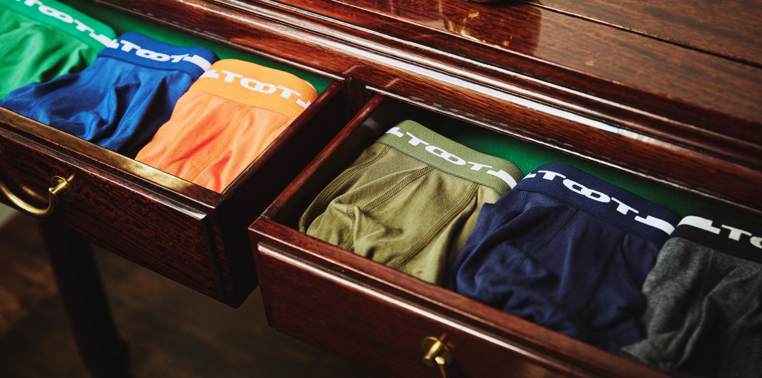 2000年のアンダーウェア業界に一石を投じたTOOT定番の『ローライズボクサー』を基本としつつ、あらゆるデザインのアンダーウェアを企画・生産し続けています。快適に安心して穿けるアンダーウェアからこの世になかった新しいアンダーウェアまで企画開発をしています。単なる消耗品ではなく、アパレルアイテムとして、アンダーウェアにはあまり採用されない素材を積極的に採用し、他にはないTOOTならではのデザインが出来上がります。