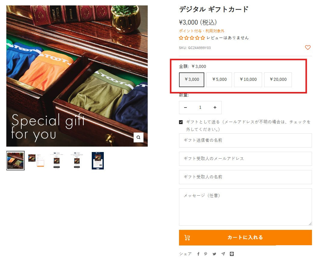 1. ギフトカードの金額を選択する